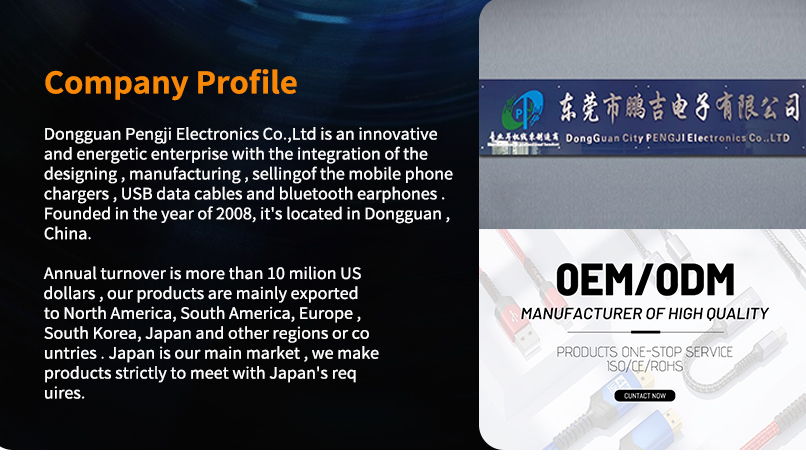 Pengji has steadily grown into a brand trusted by over 15 million users in more than 40 countries around the world. This includes Mobile phone chargers, USB data cables and earphones. With an extensive channel network both online and offline, Pengji is committed to providing maximum value backed by high-quality products and premium service to our customers.