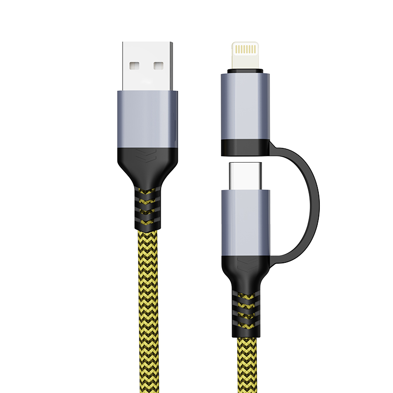 PJ-MC002K(HQ/PM)Factory OEM Nylon Braided Kevlar USBA – Type C and Lighting Cable 3A