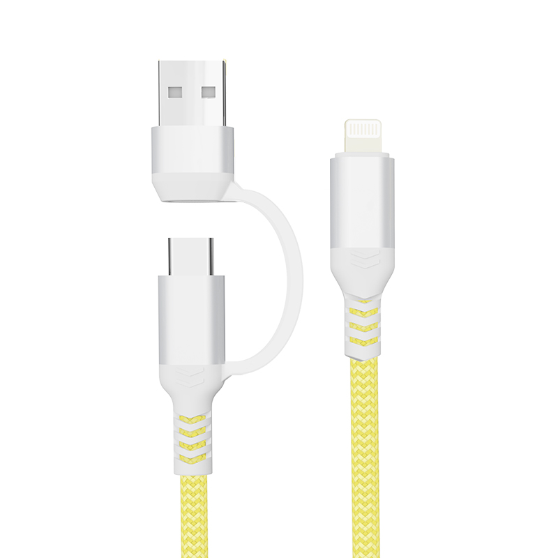 PJ-MC004K(HQ/PM)Factory OEM Nylon Braided Kevlar USBA + Type C To Lighting Cable 2A-3A