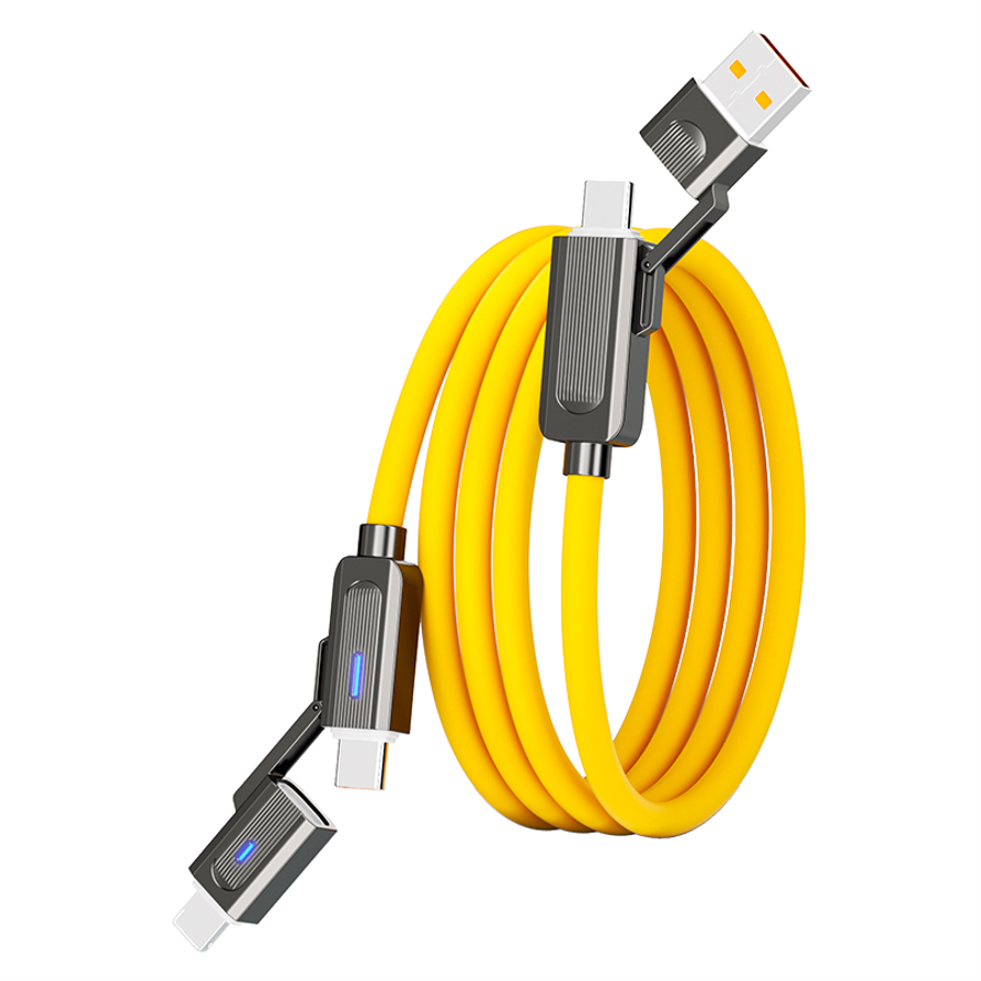 One cable for all — the 4-in-1 design features mainstream connectors, ensuring full compatibility with various devices for fast charging and data transfer.